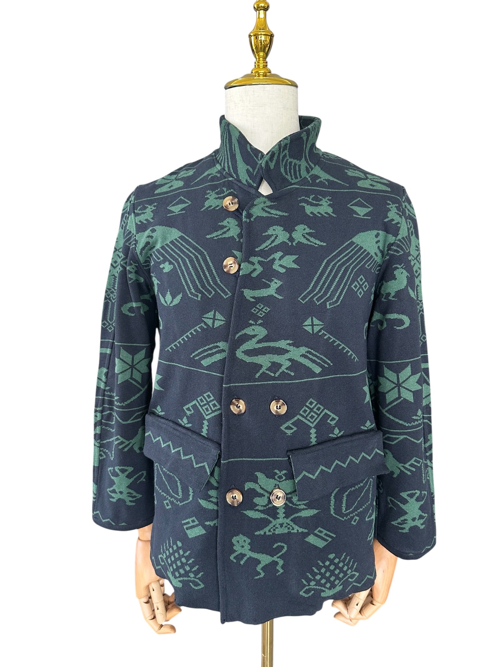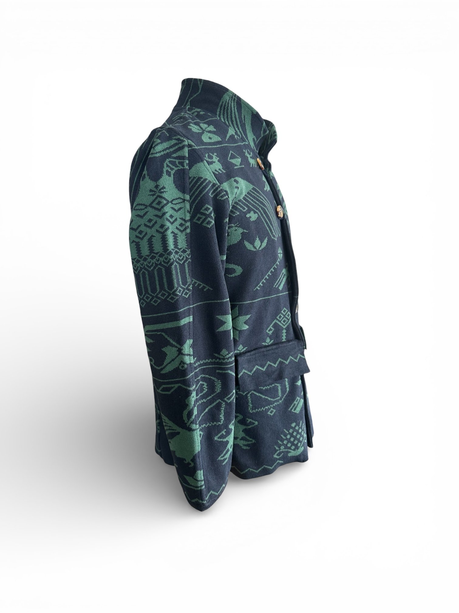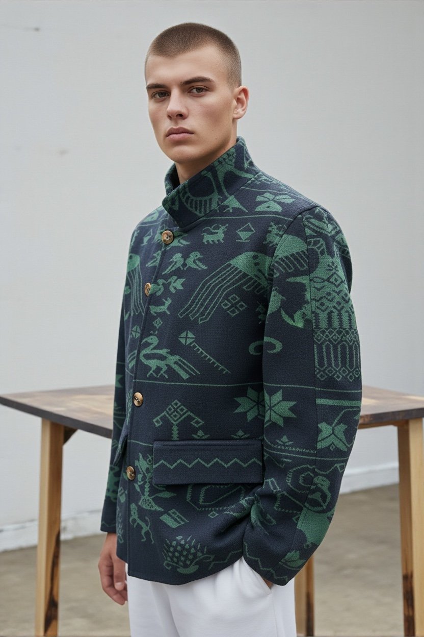 Men’s Knitted Blazer – Mexican Ethnic Design (Navy Blue & Green)